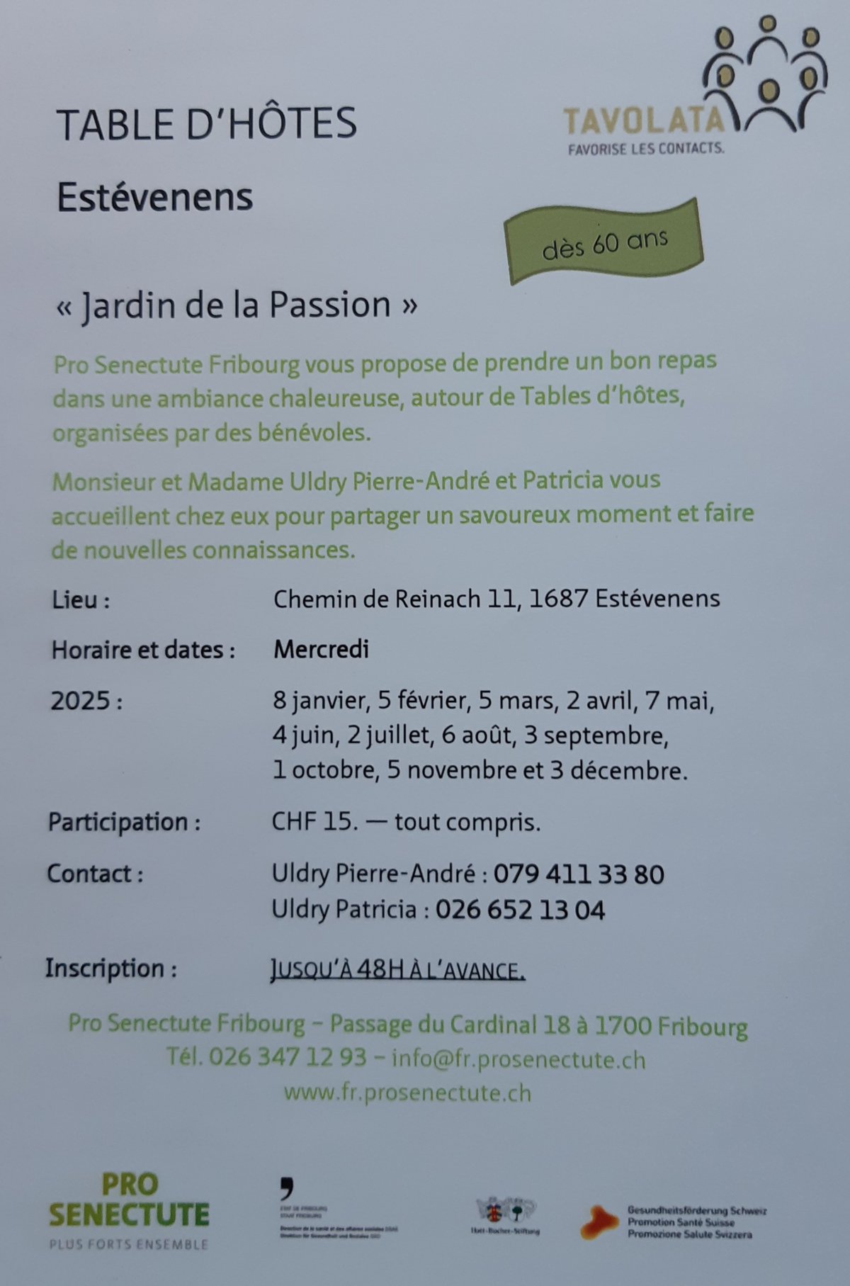 Table d'hôtes Pro Senectute